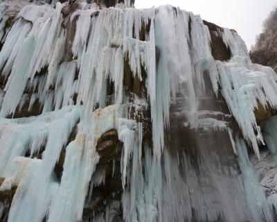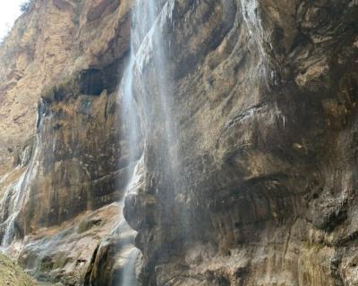 - Чегемские водопады, спадающие с одной из стен ущелья. Зимой изящные струйки превращаются в огромные кружевные занавески, от которых сложно отвести взгляд.