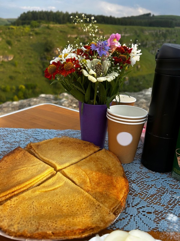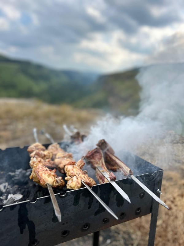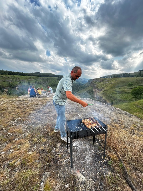 Устроимся поудобнее на свежем воздухе и отведаем вкусный шашлык, местные сыры, спелые овощи, душистую зелень. Расслабимся, отдохнём и зарядимся энергией. И всё это — с потрясающим видом на Берёзовское ущелье.