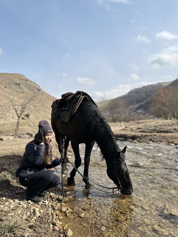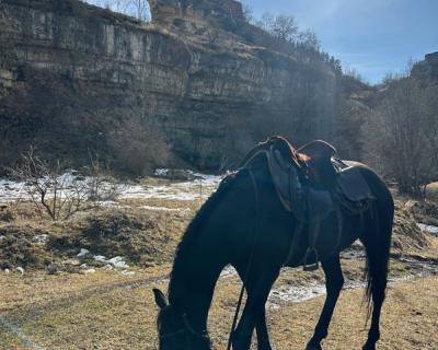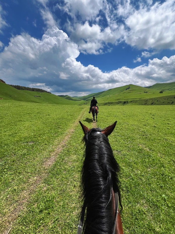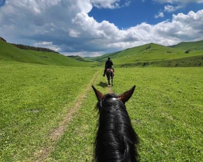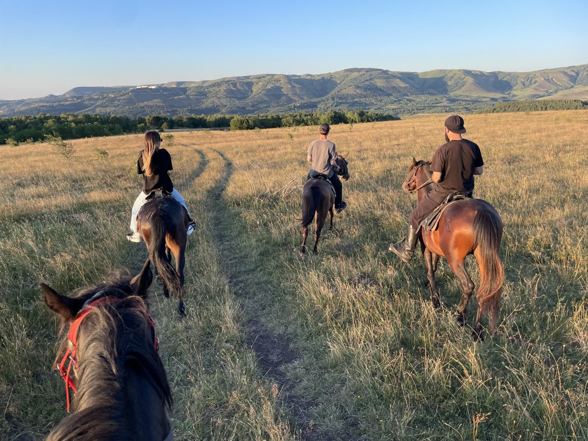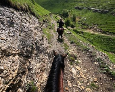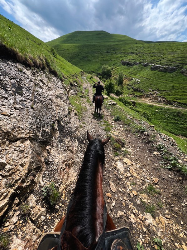 - Всадники следуют за инструктором, который задаёт темп движения. Во время прогулки обсудим традиции коневодства на Кавказе и особенности местной породы лошадей.
