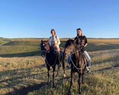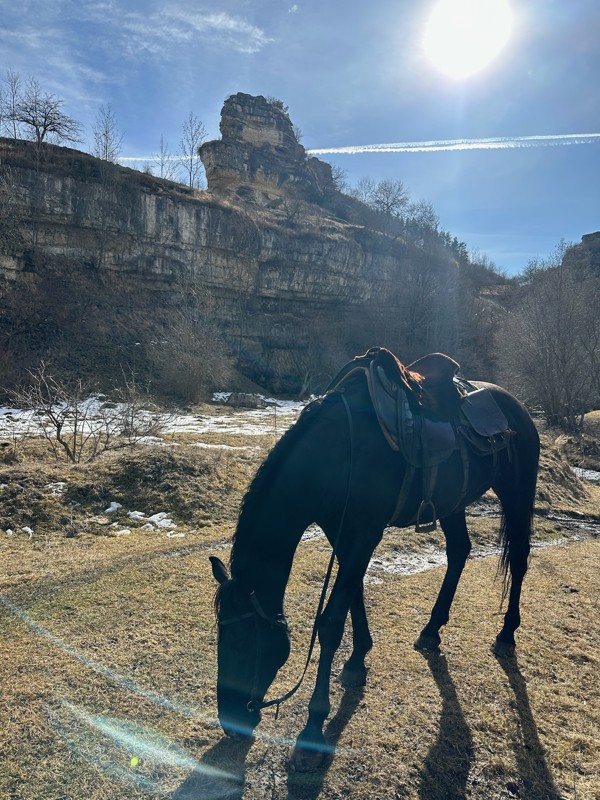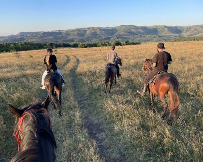 Приглашаем прокатиться верхом по литературным и историческим местам в Кисловодске. Мы проедем по небольшому посёлку, наслаждаясь видами гор, ущелья и реки Ольховки, и увидим ту самую скалу, которую описал Лермонтов в романе «Герой нашего времени». А ещё по желанию устроим дружеские соревнования: вы сможете попробовать рысь и галоп и найдёте настоящую ферму, где пасутся лошади, коровы, козы и барашки.