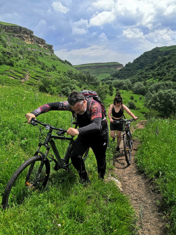 - Уровень вашей физической подготовки должен быть хорошим. Для тех, кто катался последний раз на велосипеде в школе лет 10 назад, эта экскурсия не подходит. На маршруте попадаются участки, где нужно пройти пешком, и пара мест с подъёмами вверх.
