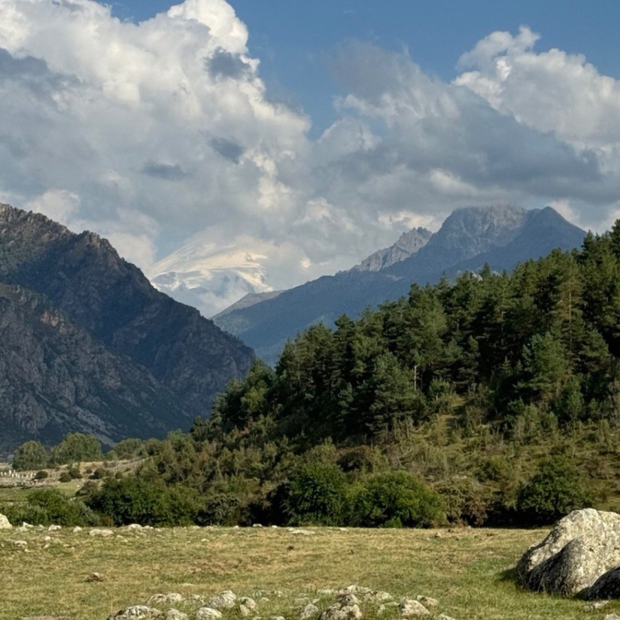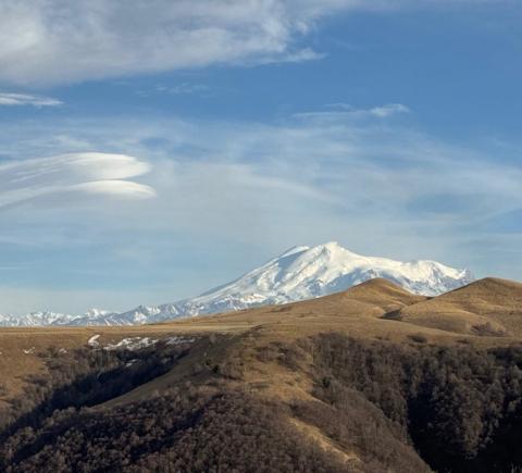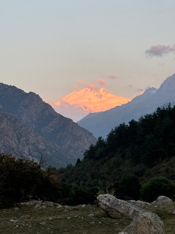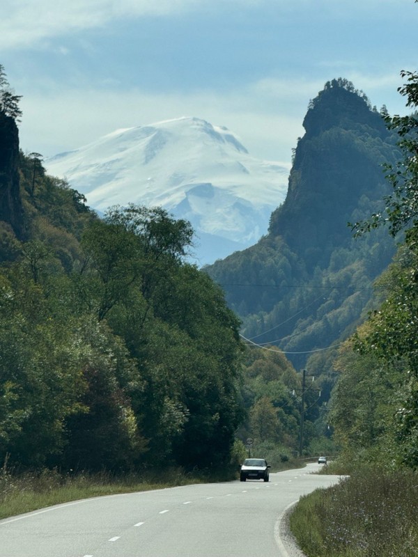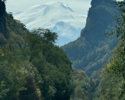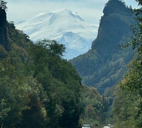 08:30 — остановка в ущелье Гумбаши на смотровой площадке с роскошным видом на Эльбрус и Большой Кавказский хребет
